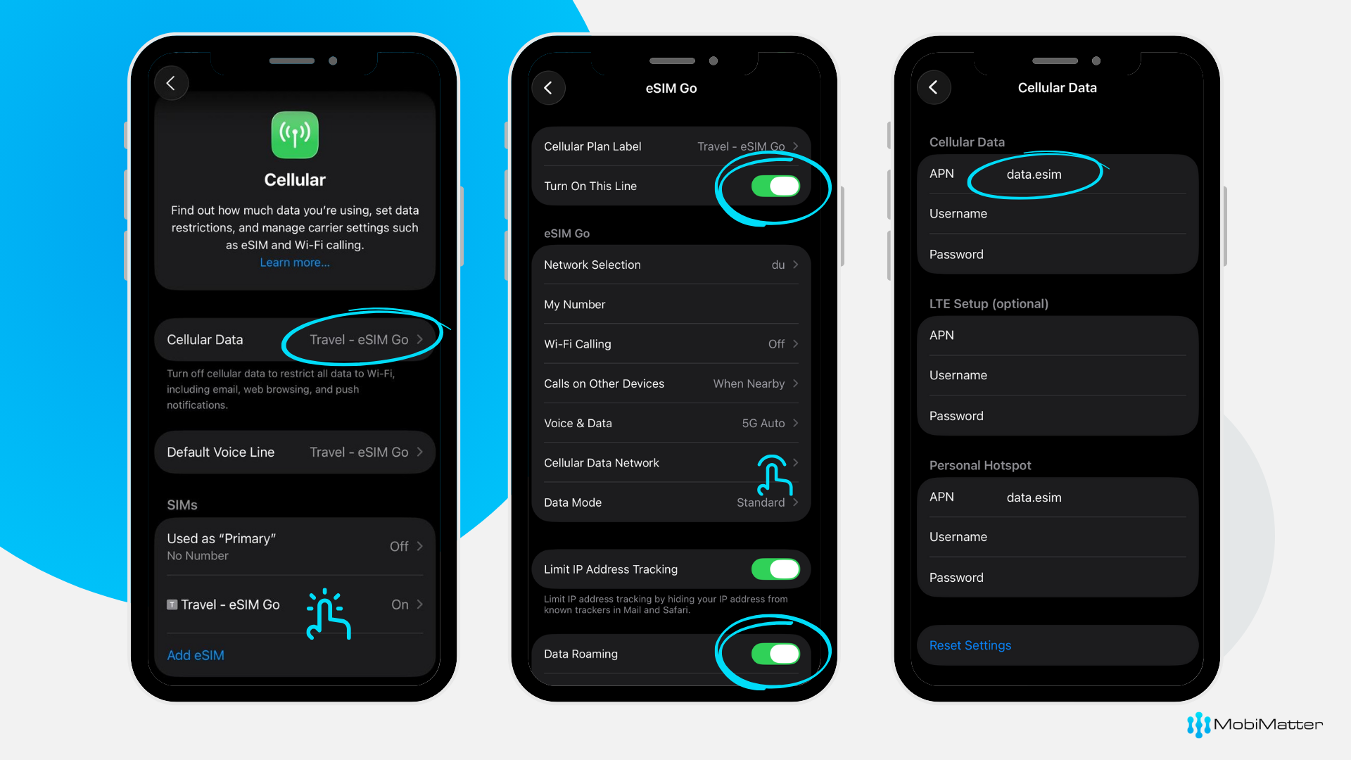 Once your eSIM is successfully downloaded to your device, and you are ready to start using it, follow these final configuration steps to activate your data and ensure a seamless connection.